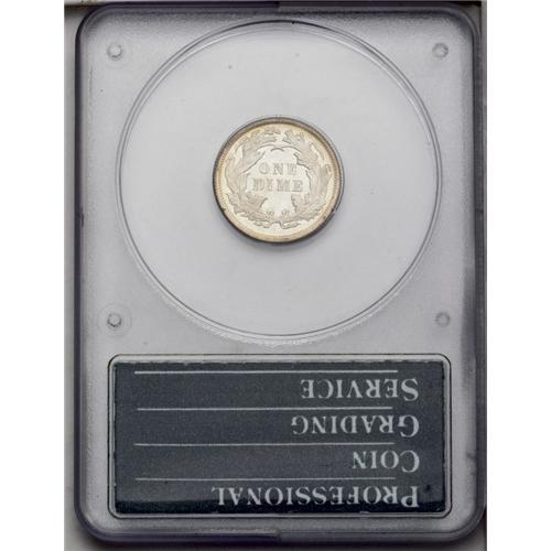 <B>1876<10C> MS65 PCGS.</B></I> Type One Reverse. Booming luster and light golden peripheral toning proclaim the originality of this flashy and clean Gem. The Es in ONE DIME are strongly die doubled. Housed in a first generation holder. Population: 36 in 65, 16 finer (4/06).