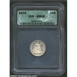 1876 10C MS66 ICG. Lustrous and very-nearly untoned. While the strike is adequate, nary a mark or ab