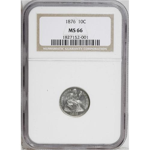<B>1876<10C> MS66 NGC.</B></I> A sharply struck and brilliant example with reflective luster. The surfaces of this coin are magnificently preserved. Census: 21 in 66, 4 finer (7/06).