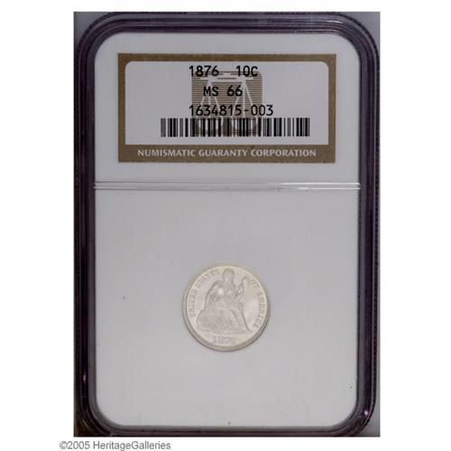 <B>1876<10C> MS66 NGC.</B></I> Type One Reverse. A brilliant and semi-prooflike Gem that has a good strike and well preserved surfaces. Struck from lightly clashed dies. An impressive type coin. Population: 26 in 66, 6 finer (10/05).