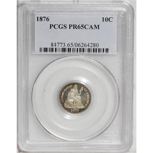 1876 10C PR65 Cameo PCGS. A sparkling, deeply reflecti