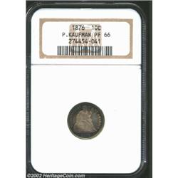 1876 10C PR66 NGC. Ex: P. Kaufman. Type I Reverse, the only known hub variety of the proof 1876 Dime