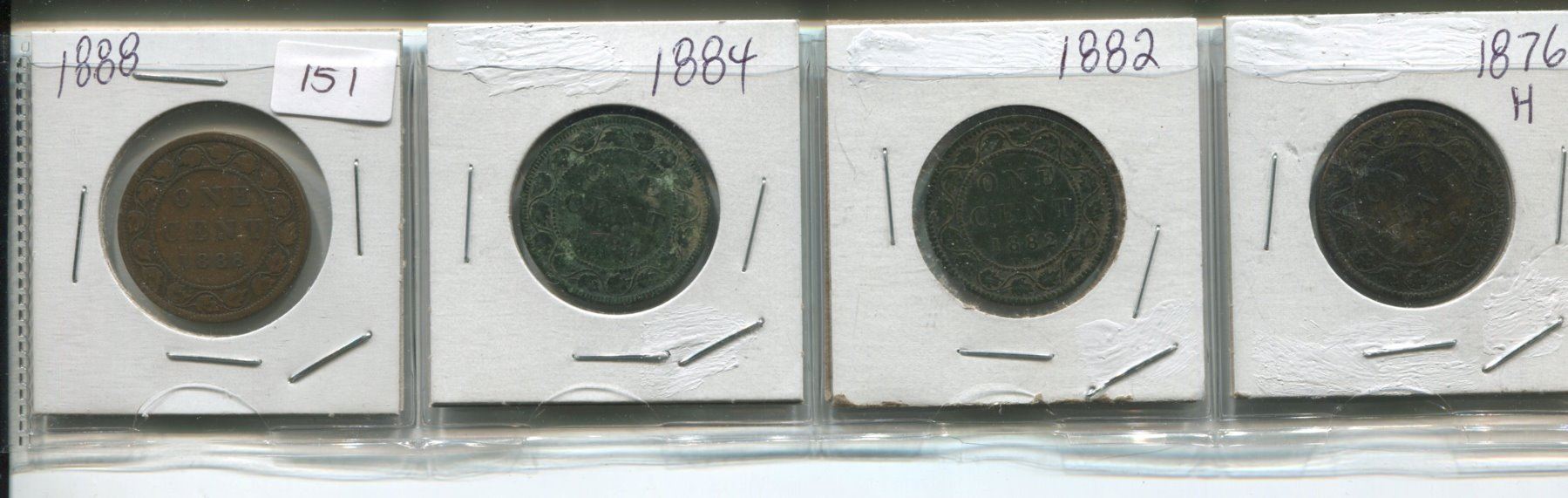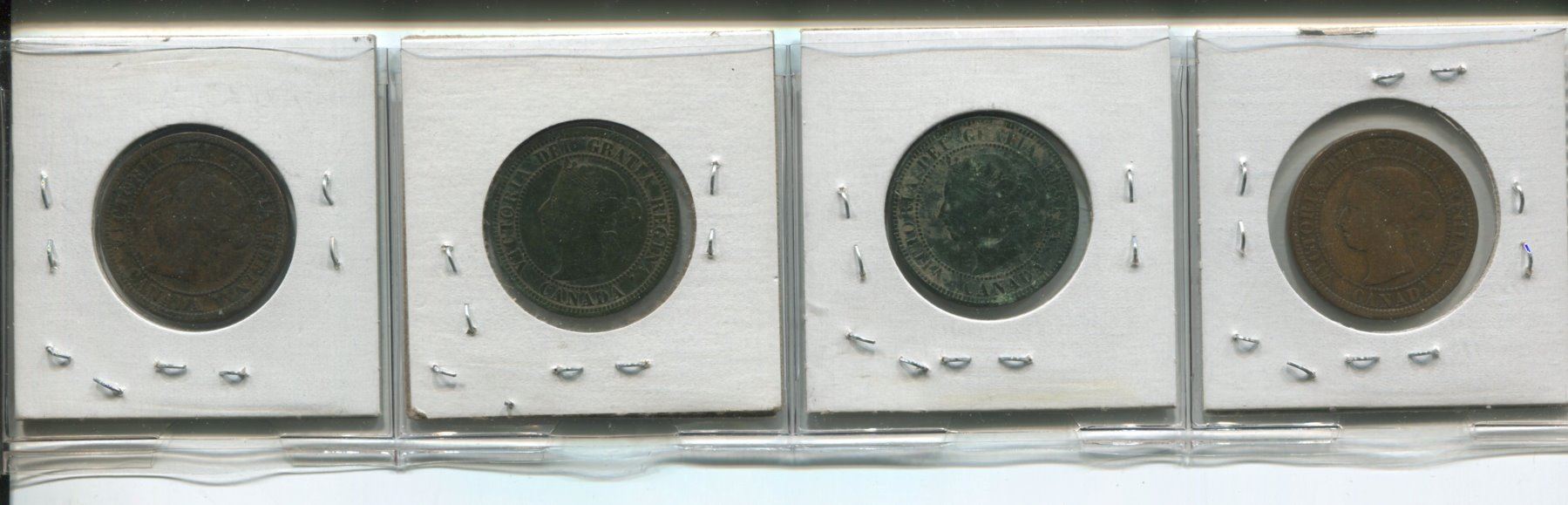 1876,1882,1884,1888,4-Large Canadian pennies,Queen Victoria