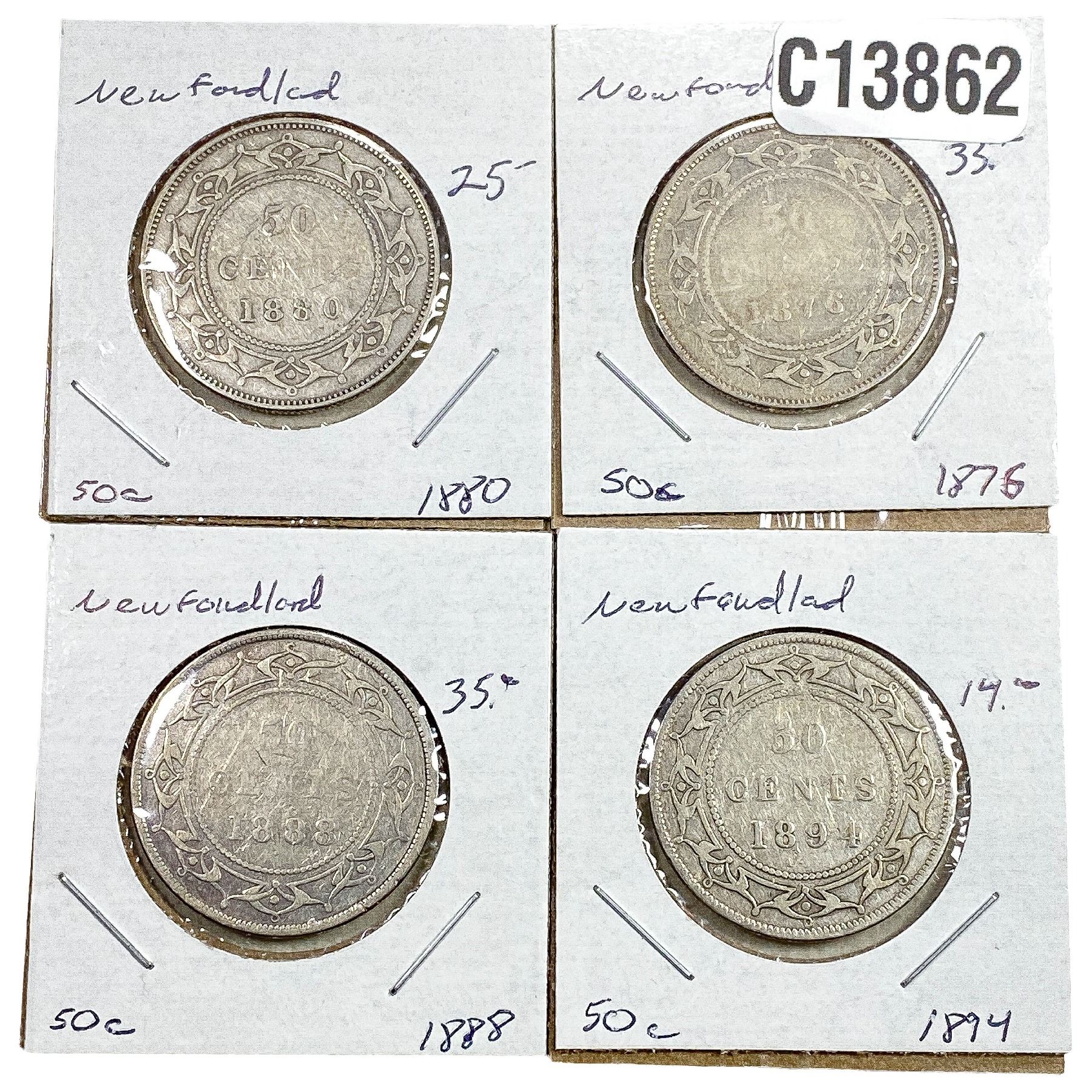 1876-1894 Better Date Newfoundland Half Dollar[4 Coins]