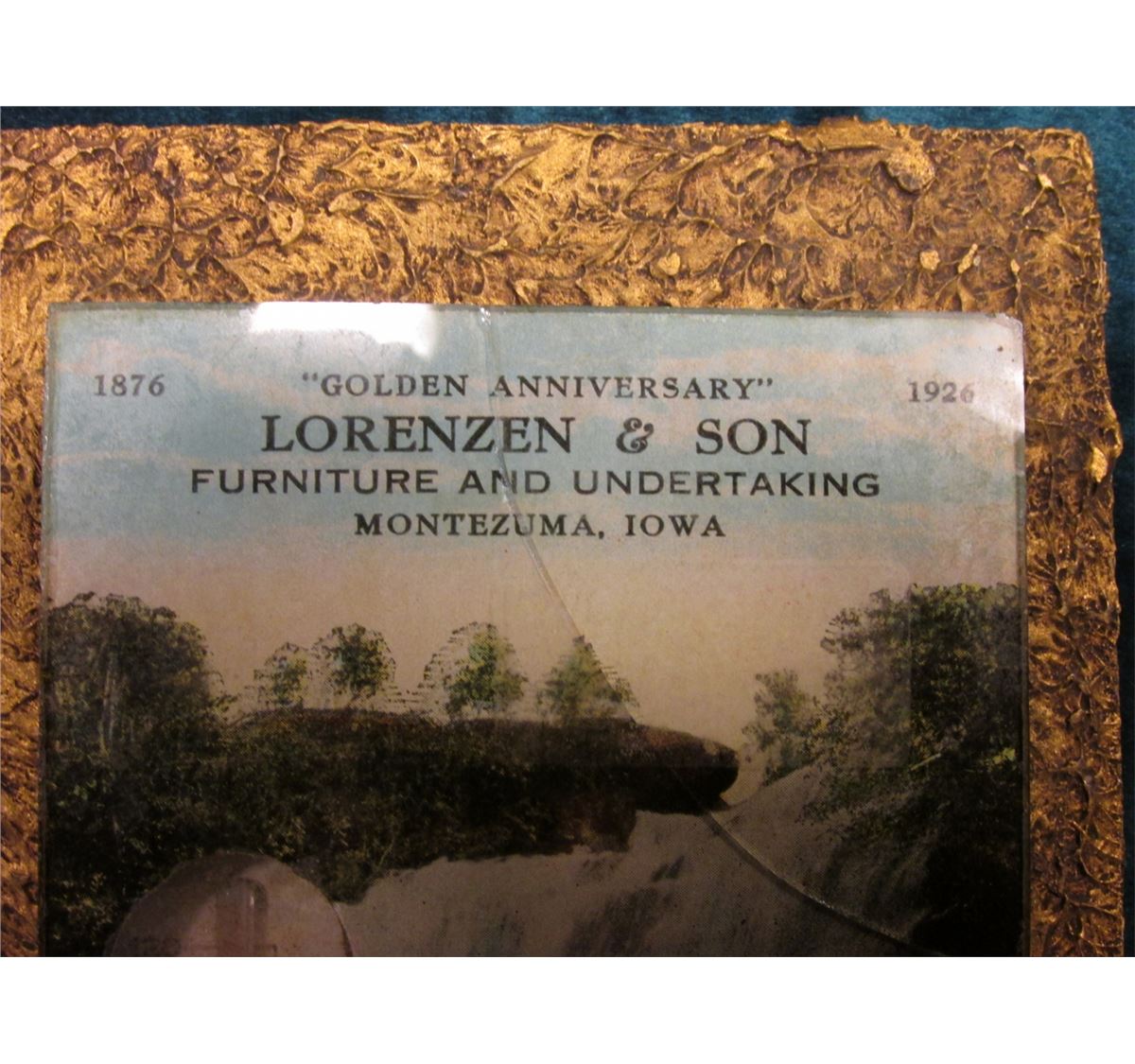 "1876 1926 "Golden Anniversary Lorenzen & Son/Furnitiure and Undertaking/Montezuma, Iowa", reverse "