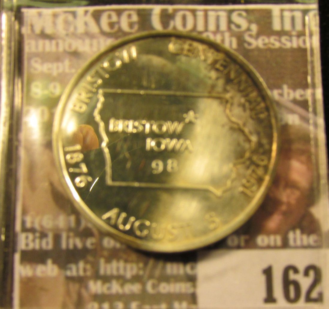 1876-1976 Bristow, Iowa Centennial Medal, Proof, .999 Fine Silver. Serial no. 98.