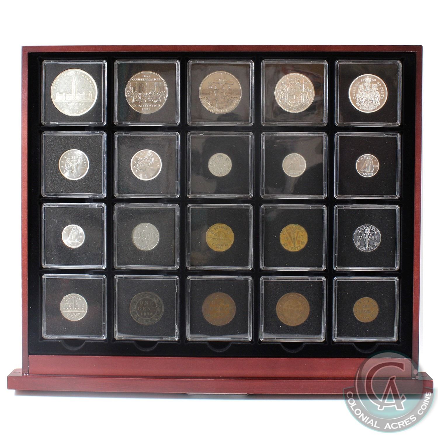 1876-1984 20 Historic Coins of Canada Collection in Deluxe Display Case.