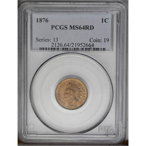<B>1876<1C> MS64 Red PCGS.</B></I> This is a splendid example with deep orange mint color on both sides. It is sharply struck, and will prove to be a fine addition to a high grade cabinet of Indian cents.