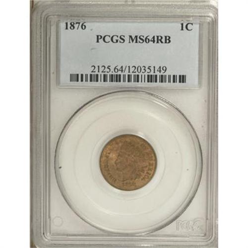<B>1876 1C MS64 Red and Brown PCGS.</B></I> Luminous rose and violet shadings with occasional chocolate accents. A dusky and attractive Choice Red and Brown representative from this popular centennial-year issue.<BR><BR><B>Coin Engraver:</B> James B. Longacre<BR><BR><b>Shipping:</b> Coins & Currency (<a target="_blank" href="http://www.heritageauctions.com/common/shipping.php">view shipping information</a>)