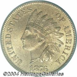 <table><tr><td><TABLE cellSpacing=0 cellPadding=0 width="100%" bgColor=#000000 border=0><TBODY> <TR><TD width="100%"><TABLE cellSpacing=1 cellPadding=3 width="100%" border=0><TBODY><TR><TD width="100%" bgColor=#79735c><FONT face=arial color=#ffffff size=3><B>Description</B> </FONT></TD></TR><TR><TD width="100%" bgColor=#ffffff><FONT face=arial size=2><B>1876 1C MS65 Red PCGS.</B></I> The 1876 is a lower mintage issue with only 7.9 million pieces produced. This is a lovely Gem example that has even red color over each side. The only detracting elements are a few light flyspecks of carbon and a planchet flaw below the O in ONE. Population: 31 in 65, 14 finer (10/03). </FONT></TD></TR></TBODY></TABLE></TD></TR></TBODY></TABLE><BR><A name=PricesRealized></A><TABLE cellSpacing=0 cellPadding=0 width="100%" bgColor=#000000 border=0><TBODY><TR><TD width="100%"><TABLE cellSpacing=1 cellPadding=3 width="100%" border=0><TBODY><TR><TD width="100%" bgColor=#79735c><A name=PR><FONT face=arial color=#ffffff size=3><B>Previous Prices from Heritage Auctions</B> </FONT></A></TD></TR><TR><TD bgColor=#f6f6ed><TABLE cellSpacing=0 cellPadding=0 width="100%" border=1><TBODY><TR><TD align=middle width="33%"><B>Date</B></TD><TD align=middle width="33%"><B>Service</B></TD><TD align=middle width="33%"><B>Price</B></TD></TR><TR bgColor=whitesmoke><TD width="33%"><B>01/28/2004</B></TD><TD width="33%">NGC</TD><TD width="33%">$1,437.50</TD></TR><TR bgColor=whitesmoke><TD width="33%"><B>01/07/2004</B></TD><TD width="33%">PCGS</TD><TD width="33%">$3,105.00</TD></TR><TR bgColor=whitesmoke><TD width="33%"><B>01/07/2004</B></TD><TD width="33%">PCGS</TD><TD width="33%">$3,450.00</TD></TR><TR bgColor=whitesmoke><TD width="33%"><B>07/29/2003</B></TD><TD width="33%">PCGS</TD><TD width="33%">$3,450.00</TD></TR><TR bgColor=whitesmoke><TD width="33%"><B>05/03/2003</B></TD><TD width="33%">PCGS</TD><TD width="33%">$5,520.00</TD></TR><TR bgColor=whitesmoke><TD width="33%"><B>03/01/2003</B></TD><TD width="33%">NGC</TD><TD width="33%">$1,437.50</TD></TR><TR bgColor=whitesmoke><TD width="33%"><B>01/11/2003</B></TD><TD width="33%">NGC</TD><TD width="33%">$2,530.00</TD></TR><TR bgColor=whitesmoke><TD width="33%"><B>11/23/2002</B></TD><TD width="33%">PCGS</TD><TD width="33%">$3,220.00</TD></TR><TR bgColor=whitesmoke><TD width="33%"><B>09/28/2002</B></TD><TD width="33%">NGC</TD><TD width="33%">$1,840.00</TD></TR><TR bgColor=whitesmoke><TD width="33%"><B>09/28/2002</B></TD><TD width="33%">PCGS</TD><TD width="33%">$3,220.00</TD></TR><TR bgColor=whitesmoke><TD width="33%"><B>06/08/2002</B></TD><TD width="33%">NGC</TD><TD width="33%">$2,070.00</TD></TR><TR bgColor=whitesmoke><TD width="33%"><B>06/08/2002</B></TD><TD width="33%">PCGS</TD><TD width="33%">$2,760.00</TD></TR><TR bgColor=whitesmoke><TD width="33%"><B>01/05/2001</B></TD><TD width="33%">PCGS</TD><TD width="33%">$2,760.00</TD></TR><TR bgColor=whitesmoke><TD width="33%"><B>06/07/2000</B></TD><TD width="33%">NGC</TD><TD width="33%">$2,415.00</TD></TR><TR bgColor=whitesmoke><TD width="33%"><B>11/21/1997</B></TD><TD width="33%">PCGS</TD><TD width="33%">$1,430.00</TD></TR><TR bgColor=whitesmoke><TD width="33%"><B>08/02/1997</B></TD><TD width="33%">NGC</TD><TD width="33%">$2,645.00</TD></TR><TR bgColor=whitesmoke><TD width="33%"><B>03/22/1997</B></TD><TD width="33%">PCGS</TD><TD width="33%">$1,380.00</TD></TR><TR bgColor=whitesmoke><TD width="33%"><B>01/10/1997</B></TD><TD width="33%">NGC</TD><TD width="33%">$1,375.00</TD></TR><TR bgColor=whitesmoke><TD width="33%"><B>09/18/1996</B></TD><TD width="33%">PCGS</TD><TD width="33%">$1,595.00</TD></TR><TR bgColor=whitesmoke><TD width="33%"><B>06/01/1996</B></TD><TD width="33%">NGC</TD><TD width="33%">$1,430.00</TD></TR><TR bgColor=whitesmoke><TD width="33%"><B>03/01/1997</B></TD><TD width="33%">ANACS</TD><TD width="33%">$2,640.00</TD></TR><TR bgColor=whitesmoke><TD width="33%"><B>09/01/1999</B></TD><TD width="33%">NGC</TD><TD width="33%">$2,645.00</TD></TR><TR bgColor=whitesmoke><TD width="33%"><B>02/01/1997</B></TD><TD width="33%">PCGS</TD><TD width="33%">$2,750.00</TD></TR><TR bgColor=whitesmoke><TD width="33%"><B>03/01/2000</B></TD><TD width="33%">PCGS</TD><TD width="33%">$2,990.00</TD></TR></TBODY></TABLE></TD></TR><TR><TD bgColor=#ffffff><FONT face=arial size=1 ?>PLEASE NOTE: All prices realized reflect the final hammer price PLUS the buyer's premium in auctions that charge a buyer's premium. Each item has a notation at the top of the listing indicating whether that lot included a buyer's premium. Example: A item that sells with a final hammer price of $100 and a 20% buyer's premium will display with a price realized of $120. All information listed is intended to be as accurate as possible, but errors are possible. Please use this guide carefully and inform us of any inaccuracies. </FONT></TD></TR></TBODY></TABLE></TD></TR></TBODY></TABLE><BR><TABLE cellSpacing=0 cellPadding=0 width="100%" bgColor=#000000 border=0><TBODY><TR><TD width="100%"><TABLE cellSpacing=1 cellPadding=3 width="100%" border=0><TBODY><TR><TD width="100%" bgColor=#79735c colSpan=6><FONT face=arial color=#ffffff size=3><B>Price Guide*</B> </FONT></TD></TR><TR bgColor=#f6f6ed><TD align=middle><B>Grade</B> </TD><TD align=middle><B>Coin World<BR>(Trends)</B> </TD><TD align=middle><B>Numismedia<BR>Retail</B> </TD><TD align=middle><B>Numismedia<BR>Wholesale</B> </TD><TD align=middle><B>Coin<BR>Universe</B> </TD><TD align=middle><B>Heritage<BR>Value Index</B> </TD></TR><TR bgColor=#ffffff><TD align=middle>64</TD><TD align=right>$1,600.00</TD><TD align=right>---</TD><TD align=right>$925.00</TD><TD align=right>$1,750.00</TD><TD align=right>$1,065.63</TD></TR><TR style="FONT-WEIGHT: bold" bgColor=#cccfdd><TD align=middle>65</TD><TD align=right>$4,500.00</TD><TD align=right>---</TD><TD align=right>$2,650.00</TD><TD align=right>$6,000.00</TD><TD align=right>$2,796.75</TD></TR><TR bgColor=#ffffff><TD align=middle>66</TD><TD align=right>$10,000.00</TD><TD align=right>---</TD><TD align=