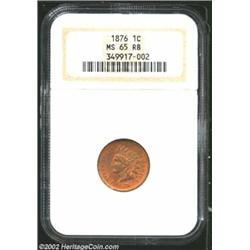 1876 1C MS65 Red and Brown NGC. A well struck example that retains most of the original rich red pat