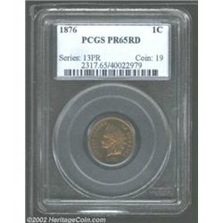 1876 1C PR65 Red PCGS. Moderately reflective with a rich reddish-bronze coloration that is enhanced.