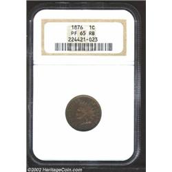 1876 1C PR65 Red and Brown NGC. Dappled steel-blue and crimson patina adorns each side, but is deepest on the left portion of the obverse. The underlying mirrors are subtly reflective and have only a single carbon spot below the 8th feather.From the Ohio Collection. Important notice: We expect to be auctioning lots at the rate of 200-250 per hour. Sometimes eBay Premier live bid software cannot keep up with that pace, so we strongly recommend that you place a realistic proxy bid now as insurance to avoid disappointment. Also please note that all Heritage/CAA lots purchased through eBay Premier carry a 20% Buyer's Premium. Please make sure you read the Terms and Conditions.