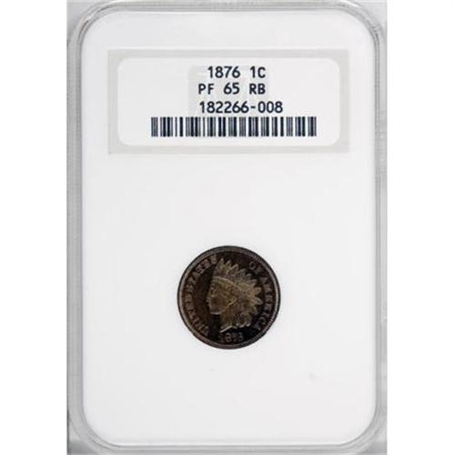 <B>1876 1C PR65 Red and Brown NGC.</B></I> The flashy mirrored fields are splendidly patinated in variegated rose-red, orange, lime, and powder-blue. The strike is penetrating, and the eye appeal is exemplary. In a prior generation holder.<BR><BR><B>Coin Engraver:</B> James B. Longacre<BR><BR><b>Shipping:</b> Coins & Currency (<a target="_blank" href="http://www.heritageauctions.com/common/shipping.php">view shipping information</a>)