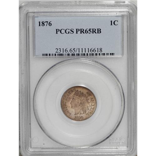 1876 1C PR65 Red and Brown PCGS. A deeply reflective a