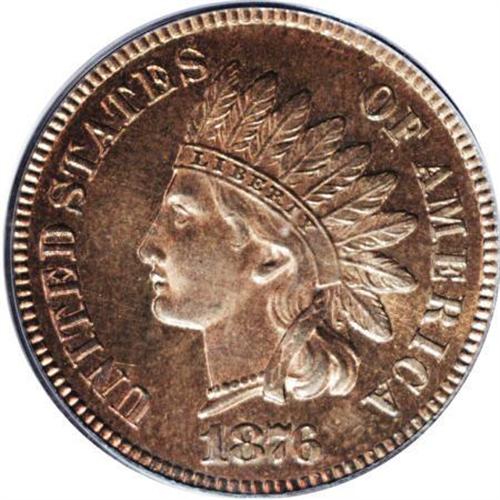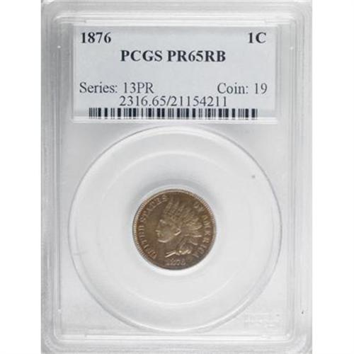 <B>1876 1C PR65 Red and Brown PCGS.</B></I> Warm mahogany and copper-orange patina graces the well-preserved surfaces of this appealing Gem. A sharply struck proof from the centennial year. Population: 37 in 65 Red and Brown, 8 finer (7/07).<BR><BR><B>Coin Engraver:</B> James B. Longacre<BR><BR><b>Shipping:</b> Coins & Currency (<a target="_blank" href="http://www.heritageauctions.com/common/shipping.php">view shipping information</a>)