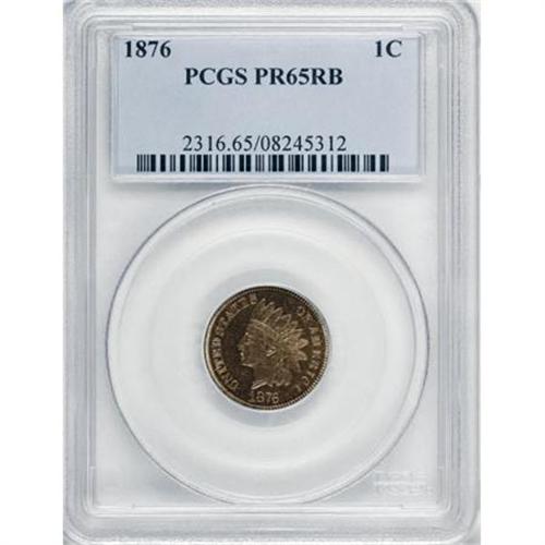 <B>1876 1C PR65 Red and Brown PCGS.</B></I> A pleasingly detailed proof representative from this centennial-year issue, pumpkin-orange and mushroom-brown with hints of squash-yellow at the margins. A single carbon spot is noted to the left of Liberty's lips.<BR><BR><B>Coin Engraver:</B> James B. Longacre<BR><BR><b>Shipping:</b> Coins & Currency (<a target="_blank" href="http://www.heritageauctions.com/common/shipping.php">view shipping information</a>)