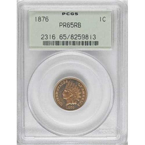 <B>1876 1C PR65 Red and Brown PCGS.</B></I> It is only due to a faint splash of lilac toning on each side that this Gem proof was not called Red. Essentially full orange brilliance remains on both sides.<BR><BR><B>Coin Engraver:</B> James B. Longacre<BR><BR><b>Shipping:</b> Coins & Currency (<a target="_blank" href="http://www.heritageauctions.com/common/shipping.php">view shipping information</a>)