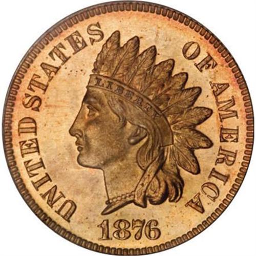 <B>1876 1C PR66 Red PCGS.</B></I> The business strike 1876 coins saw a low mintage, but the proof mintage was larger than normal, estimated at 1,150 pieces, no doubt because of anticipated greater demand due to the U.S. Centennial celebration. Much cameo contrast is present, if unmentioned on the holder, and the golden-orange surfaces are pristine and problem-free. Population: 8 in 66 Red, 0 finer (12/07).<BR><BR><B>Coin Engraver:</B> James B. Longacre<BR><BR><b>Shipping:</b> Coins & Currency (<a target="_blank" href="http://www.heritageauctions.com/common/shipping.php">view shipping information</a>)