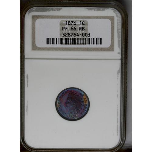 <B>1876<1C> PR66 Red and Brown NGC.</B></I> This pinpoint-sharp Premium Gem is vividly toned violet-red, electric-blue, sea-green, and peach. A spectacular example of this low mintage Centennial issue.