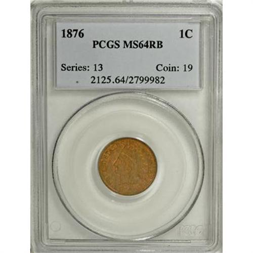 <B>1876 1C MS64 Red and Brown PCGS.</B></I> PCGS Population (167/55). NGC Census: (109/107). Mintage: 7,944,000. Numismedia Wsl. Price for NGC/PCGS coin in MS64: $380. (#2125)<BR><BR><B>Coin Engraver:</B> James B. Longacre<BR><BR><b>Shipping:</b> Coins & Currency (<a target="_blank" href="http://www.heritageauctions.com/common/shipping.php">view shipping information</a>)