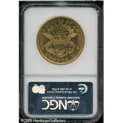 <B>1876 $20 AU58 Prooflike NGC.</B></I> The fields are noticeably mirrored, although the reflectivity is diminished by the expected numerous minor marks. A mark on the obverse rim past 12 o'clock is barely worthy of individual mention. Lot:9124