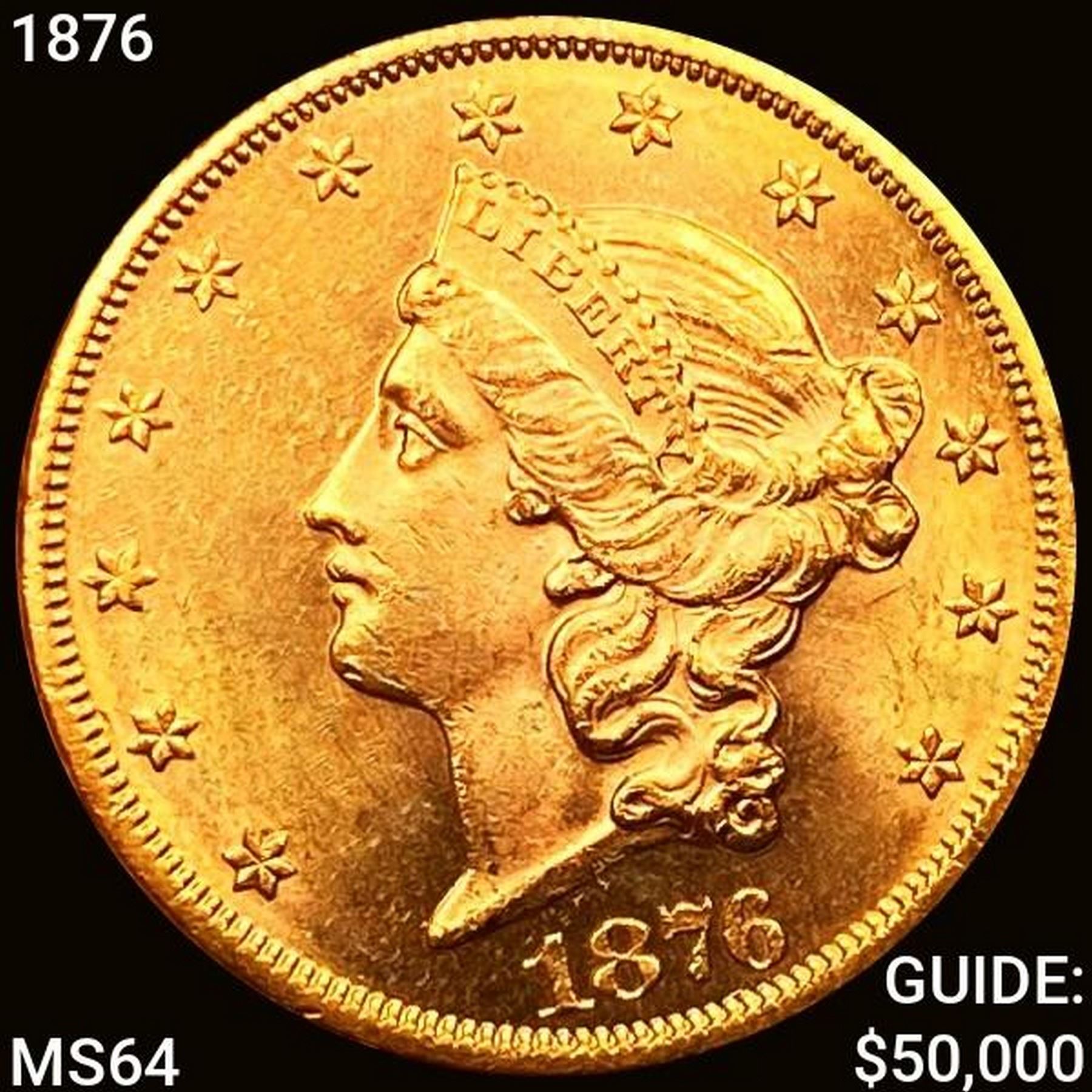 1876 $20 Gold Double Eagle CHOICE BU