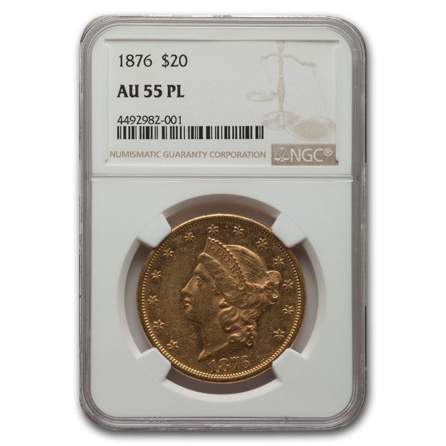 1876 $20 Liberty Gold Double Eagle AU-55 NGC (PL)