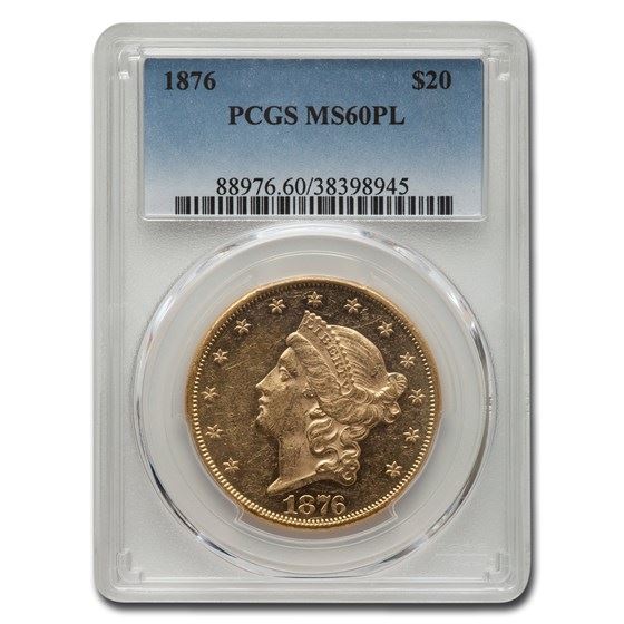 One piece 1876 $20 Liberty Gold Double Eagle MS-60 PCGS (PL)