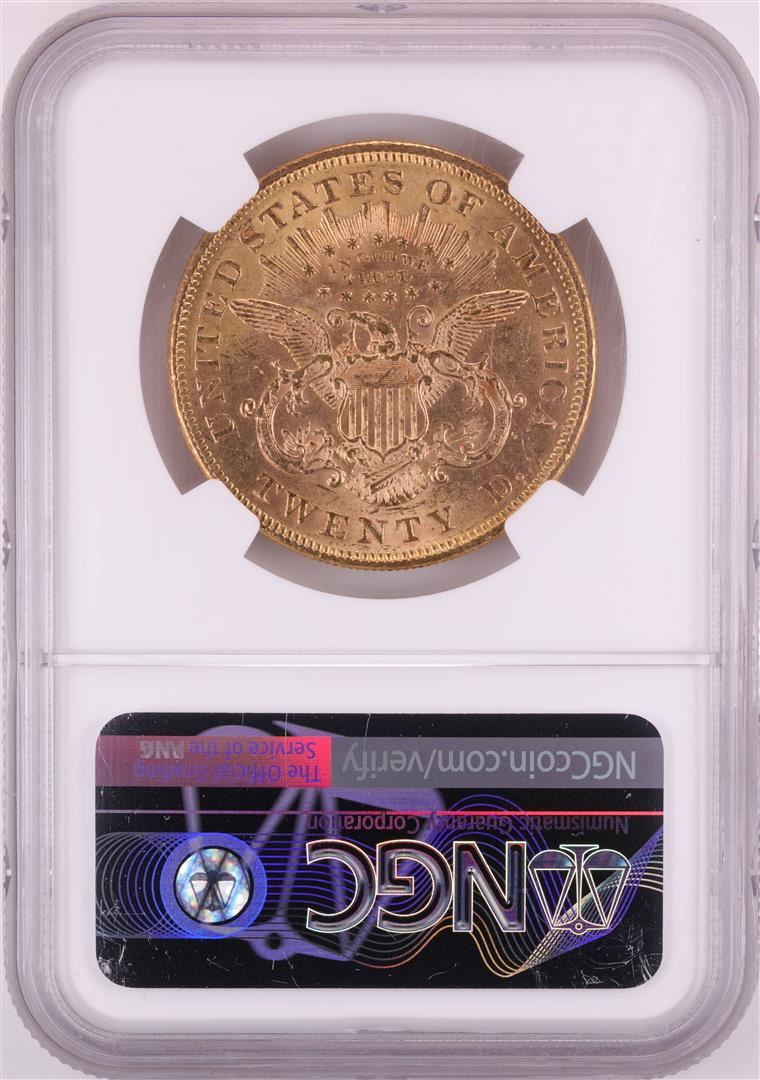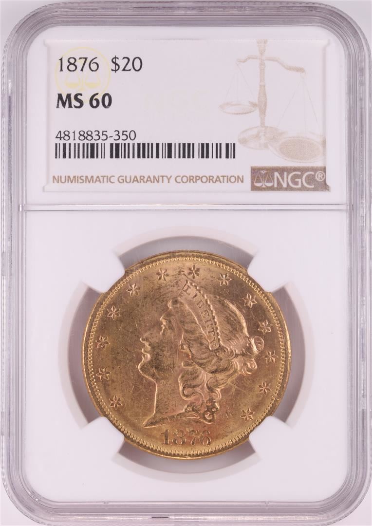 One 1876 $20 Liberty Head Double Eagle Gold Coin NGC MS60. NGC Certified.