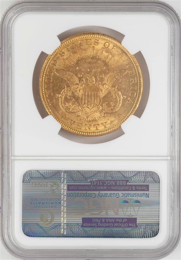 One 1876 $20 Liberty Head Double Eagle Gold Coin NGC MS61. NGC Certified.