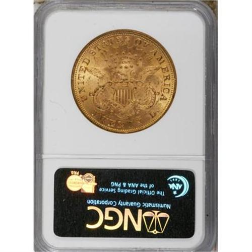 <B>1876 $20 MS61 NGC.</B></I> NGC Census: (312/171). PCGS Population (216/165). Mintage: 583,905. Numismedia Wsl. Price for NGC/PCGS coin in MS61: $1,500. (#8976)<BR><BR><B>Coin Engraver:</B> James B. Longacre<BR><BR><b>Shipping:</b> Coins & Currency (<a target="_blank" href="http://www.heritageauctions.com/common/shipping.php">view shipping information</a>)