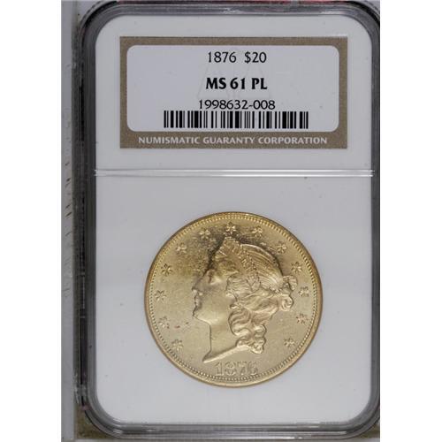 1876 $20 MS61 Prooflike NGC. An immensely reflective p