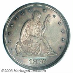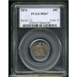 <TABLE cellSpacing=0 cellPadding=0 width="100%" bgColor=#000000 border=0><TBODY><TR><TD width="100%"><TABLE cellSpacing=1 cellPadding=3 width="100%" border=0><TBODY><TR><TD width="100%" bgColor=#79735c><FONT face=arial color=#ffffff size=3><B>Description</B> </FONT></TD></TR><TR><TD width="100%" bgColor=#ffffff><FONT face=arial size=2><B>1876 20C MS67 PCGS.</B></I> Without doubt, this is the finest business strike 1876 Twenty Cent Piece and the most attractive survivor that we have ever handled. It is also the finest certified example that we have offered in one of our Signature Sales, which should come as no surprise given the paltry certified population of the 1876 in MS67 - a total of five coins at both services combined (7/03). There is a thin, warm layer of natural patina over each side, featuring colors of mint-green, golden-rose, and jade-green. The sharply struck, virtually pristine surfaces display eye appeal that, alone, would easily support an even higher grade. There are simply not enough superlatives to fully define this remarkably preserved example. </FONT></TD></TR></TBODY></TABLE></TD></TR></TBODY></TABLE><BR><A name=PricesRealized></A><TABLE cellSpacing=0 cellPadding=0 width="100%" bgColor=#000000 border=0><TBODY><TR><TD width="100%"><TABLE cellSpacing=1 cellPadding=3 width="100%" border=0><TBODY><TR><TD width="100%" bgColor=#79735c><A name=PR><FONT face=arial color=#ffffff size=3><B>Previous Prices from Heritage Auctions</B> </FONT></A></TD></TR><TR><TD bgColor=#f6f6ed><TABLE cellSpacing=0 cellPadding=0 width="100%" border=1><TBODY><TR><TD align=middle width="33%"><B>Date</B></TD><TD align=middle width="33%"><B>Service</B></TD><TD align=middle width="33%"><B>Price</B></TD></TR><TR bgColor=whitesmoke><TD width="33%"><B>08/08/2001</B></TD><TD width="33%">NGC</TD><TD width="33%">$18,975.00</TD></TR></TBODY></TABLE></TD></TR><TR><TD bgColor=#ffffff><FONT face=arial size=1 ?>PLEASE NOTE: All prices realized reflect the final hammer price PLUS the buyer's premium in auctions that charge a buyer's premium. Each item has a notation at the top of the listing indicating whether that lot included a buyer's premium. Example: A item that sells with a final hammer price of $100 and a 20% buyer's premium will display with a price realized of $120. All information listed is intended to be as accurate as possible, but errors are possible. Please use this guide carefully and inform us of any inaccuracies. </FONT></TD></TR></TBODY></TABLE></TD></TR></TBODY></TABLE><BR><TABLE cellSpacing=0 cellPadding=0 width="100%" bgColor=#000000 border=0><TBODY><TR><TD width="100%"><TABLE cellSpacing=1 cellPadding=3 width="100%" border=0><TBODY><TR><TD width="100%" bgColor=#79735c colSpan=6><FONT face=arial color=#ffffff size=3><B>Price Guide*</B> </FONT></TD></TR><TR bgColor=#f6f6ed><TD align=middle><B>Grade</B> </TD><TD align=middle><B>Coin World<BR>(Trends)</B> </TD><TD align=middle><B>Numismedia<BR>Retail</B> </TD><TD align=middle><B>Numismedia<BR>Wholesale</B> </TD><TD align=middle><B>Coin<BR>Universe</B> </TD><TD align=middle><B>Heritage<BR>Value Index</B> </TD></TR><TR bgColor=#ffffff><TD align=middle>66</TD><TD align=right>$12,500.00</TD><TD align=right>---</TD><TD align=right>$10,750.00</TD><TD align=right>$16,900.00</TD><TD align=right>$10,290.00</TD></TR><TR style="FONT-WEIGHT: bold" bgColor=#cccfdd><TD align=middle>67</TD><TD align=right>---</TD><TD align=right>---</TD><TD align=right>$23,750.00</TD><TD align=right>---</TD><TD align=right>---</TD></TR><TR bgColor=#ffffff><TD align=middle>68</TD><TD align=right>---</TD><TD align=right>---</TD><TD align=right>---</TD><TD align=right>---</TD><TD align=right>---</TD></TR><TR bgColor=#ffffff><TD colSpan=6><FONT size=1>*All information listed is intended to be as accurate as possible, but errors are possible. No item may be returned or refused based on this information which is provided as a service to our customers. You should contact each pricing source directly to determine the accuracy of this information. </FONT></TD></TR></TBODY></TABLE></TD></TR></TBODY></TABLE><BR><TABLE cellSpacing=0 cellPadding=0 width="100%" bgColor=#000000 border=0><TBODY><TR><TD width="100%"><TABLE cellSpacing=1 cellPadding=3 width="100%" border=0><TBODY><TR><TD width="100%" bgColor=#79735c><FONT face=arial color=#ffffff size=3><B>Population Guide</B> </FONT></TD></TR><TR bgColor=#ffffff><TD align=middle><!-- Begin Output of Population Grid--><TABLE cellSpacing=0 cellPadding=0 width="100%" border=0><TBODY><TR><TD vAlign=center><TABLE cellSpacing=0 width="100%" border=1 cellsadding="3"><TBODY><TR><TD vAlign=center><TABLE cellSpacing=0 cellPadding=3 width="100%" border=1><TBODY><TR><TD vAlign=center align=middle bgColor=#f0f1e8 colSpan=2 <CENTER><FONT face=Arial size=2><B>PCGS Pop </B></FONT><CENTER></CENTER></TD><TD vAlign=center align=middle bgColor=#f0f1e8 colSpan=2><CENTER><FONT face=Arial size=2><B>NGC Pop</B></CENTER></FONT></TD></TR><TR><TD vAlign=center><FONT face=Arial size=2>(67)</FONT> </TD><TD vAlign=center align=right><FONT face=Arial size=2>0</FONT> </TD><TD vAlign=center><FONT face=Arial size=2>(67)</FONT> </TD><TD vAlign=center align=right><FONT face=Arial size=2>5</FONT> </TD></TR><TR><TD vAlign=center><FONT face=Arial size=2>(>67)</FONT> </TD><TD vAlign=center align=right><FONT face=Arial size=2>0</FONT> </TD><TD vAlign=center><FONT face=Arial size=2>(>67)</FONT> </TD><TD vAlign=center align=right><FONT face=Arial size=2>0</FONT> </TD></TR></TBODY></TABLE></TD></TR></TBODY></TABLE></TD></TR></TBODY></TABLE><!-- End Output of Population Grid--> Important notice: Heritage usually auctions material at the rate of 200-250 lots per hour. On some occasions eBay Live bid software or the Internet may not be able to keep up with the pace of the auction. We recommend placing a realistic absentee bid now as insurance to avoid disappointment. Occasionally the auctioneer may eliminate or reject an eBay Live bid, and the auctioneer may also reopen a lot after the cl