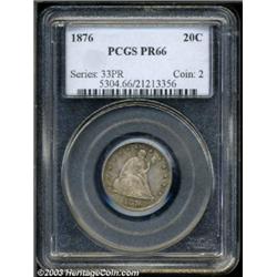 <table><tr><td><TABLE cellSpacing=0 cellPadding=0 width="100%" bgColor=#000000 border=0><TBODY> <TR><TD width="100%"><TABLE cellSpacing=1 cellPadding=3 width="100%" border=0><TBODY><TR><TD width="100%" bgColor=#79735c><FONT face=arial color=#ffffff size=3><B>Description</B> </FONT></TD></TR><TR><TD width="100%" bgColor=#ffffff><FONT face=arial size=2><B>1876 20C PR66 PCGS.</B></I> Deeply toned, yet the underlying surfaces still display most of their reflective qualities. The obverse is toned a moderate mixture of gunmetal-blue and reddish-gold colors, the reverse is a more even, deep blue-gray. The strike is excellent and the requisite proof characteristics are all in attendance. Only 1,260 of these proofs were struck. Population: 11 in 66, 1 finer (9/03). </FONT></TD></TR></TBODY></TABLE></TD></TR></TBODY></TABLE><BR><A name=PricesRealized></A><TABLE cellSpacing=0 cellPadding=0 width="100%" bgColor=#000000 border=0><TBODY><TR><TD width="100%"><TABLE cellSpacing=1 cellPadding=3 width="100%" border=0><TBODY><TR><TD width="100%" bgColor=#79735c><A name=PR><FONT face=arial color=#ffffff size=3><B>Previous Prices from Heritage Auctions</B> </FONT></A></TD></TR><TR><TD bgColor=#f6f6ed><TABLE cellSpacing=0 cellPadding=0 width="100%" border=1><TBODY><TR><TD align=middle width="33%"><B>Date</B></TD><TD align=middle width="33%"><B>Service</B></TD><TD align=middle width="33%"><B>Price</B></TD></TR><TR bgColor=whitesmoke><TD width="33%"><B>08/19/1995</B></TD><TD width="33%">NGC</TD><TD width="33%">$9,900.00</TD></TR></TBODY></TABLE></TD></TR><TR><TD bgColor=#ffffff><FONT face=arial size=1 ?>PLEASE NOTE: All prices realized reflect the final hammer price PLUS the buyer's premium in auctions that charge a buyer's premium. Each item has a notation at the top of the listing indicating whether that lot included a buyer's premium. Example: A item that sells with a final hammer price of $100 and a 20% buyer's premium will display with a price realized of $120. All information listed is intended to be as accurate as possible, but errors are possible. Please use this guide carefully and inform us of any inaccuracies. </FONT></TD></TR></TBODY></TABLE></TD></TR></TBODY></TABLE><BR><TABLE cellSpacing=0 cellPadding=0 width="100%" bgColor=#000000 border=0><TBODY><TR><TD width="100%"><TABLE cellSpacing=1 cellPadding=3 width="100%" border=0><TBODY><TR><TD width="100%" bgColor=#79735c colSpan=6><FONT face=arial color=#ffffff size=3><B>Price Guide*</B> </FONT></TD></TR><TR bgColor=#f6f6ed><TD align=middle><B>Grade</B> </TD><TD align=middle><B>Coin World<BR>(Trends)</B> </TD><TD align=middle><B>Numismedia<BR>Retail</B> </TD><TD align=middle><B>Numismedia<BR>Wholesale</B> </TD><TD align=middle><B>Coin<BR>Universe</B> </TD><TD align=middle><B>Heritage<BR>Value Index</B> </TD></TR><TR bgColor=#ffffff><TD align=middle>65</TD><TD align=right>$10,000.00</TD><TD align=right>---</TD><TD align=right>$7,450.00</TD><TD align=right>$11,500.00</TD><TD align=right>$7,004.38</TD></TR><TR style="FONT-WEIGHT: bold" bgColor=#cccfdd><TD align=middle>66</TD><TD align=right>$14,000.00</TD><TD align=right>---</TD><TD align=right>$9,850.00</TD><TD align=right>$17,000.00</TD><TD align=right>$10,850.00</TD></TR><TR bgColor=#ffffff><TD align=middle>67</TD><TD align=right>---</TD><TD align=right>---</TD><TD align=right>$24,150.00</TD><TD align=right>---</TD><TD align=right>---</TD></TR><TR bgColor=#ffffff><TD colSpan=6><FONT size=1>*All information listed is intended to be as accurate as possible, but errors are possible. No item may be returned or refused based on this information which is provided as a service to our customers. You should contact each pricing source directly to determine the accuracy of this information. </FONT></TD></TR></TBODY></TABLE></TD></TR></TBODY></TABLE><BR><TABLE cellSpacing=0 cellPadding=0 width="100%" bgColor=#000000 border=0><TBODY><TR><TD width="100%"><TABLE cellSpacing=1 cellPadding=3 width="100%" border=0><TBODY><TR><TD width="100%" bgColor=#79735c><FONT face=arial color=#ffffff size=3><B>Population Guide</B> </FONT></TD></TR><TR bgColor=#ffffff><TD align=middle><!-- Begin Output of Population Grid--><TABLE cellSpacing=0 cellPadding=0 width="100%" border=0><TBODY><TR><TD vAlign=center><TABLE cellSpacing=0 width="100%" border=1 cellsadding="3"><TBODY><TR><TD vAlign=center><TABLE cellSpacing=0 cellPadding=3 width="100%" border=1><TBODY><TR><TD vAlign=center align=middle bgColor=#f0f1e8 colSpan=2 <CENTER><FONT face=Arial size=2><B>PCGS Pop </B></FONT><CENTER></CENTER></TD><TD vAlign=center align=middle bgColor=#f0f1e8 colSpan=2><CENTER><FONT face=Arial size=2><B>NGC Pop</B></CENTER></FONT></TD></TR><TR><TD vAlign=center><FONT face=Arial size=2>(66)</FONT> </TD><TD vAlign=center align=right><FONT face=Arial size=2>11</FONT> </TD><TD vAlign=center><FONT face=Arial size=2>(66)</FONT> </TD><TD vAlign=center align=right><FONT face=Arial size=2>6</FONT> </TD></TR><TR><TD vAlign=center><FONT face=Arial size=2>(>66)</FONT> </TD><TD vAlign=center align=right><FONT face=Arial size=2>1</FONT> </TD><TD vAlign=center><FONT face=Arial size=2>(>66)</FONT> </TD><TD vAlign=center align=right><FONT face=Arial size=2>6</FONT> </TD></TR></TBODY></TABLE></TD></TR></TBODY></TABLE></TD></TR></TBODY></TABLE><!-- End Output of Population Grid--></TD></TR></TBODY></TABLE></TD></TR></TBODY></TABLE><BR><TABLE cellSpacing=0 cellPadding=0 width="100%" bgColor=#000000 border=0><TBODY><TR> Important notice: Heritage usually auctions material at the rate of 200-250 lots per hour. On some occasions eBay Live bid software or the Internet may not be able to keep up with the pace of the auction. We recommend placing a realistic absentee bid now as insurance to avoid disappointment. Occasionally the auctioneer may eliminate or reject an eBay Live bid, and the auctioneer may also reopen a lot after the close of the eBay live bidding (usually because we missed an audience bid), and may reject your bid even if it shows you as the winning bidder. By bid