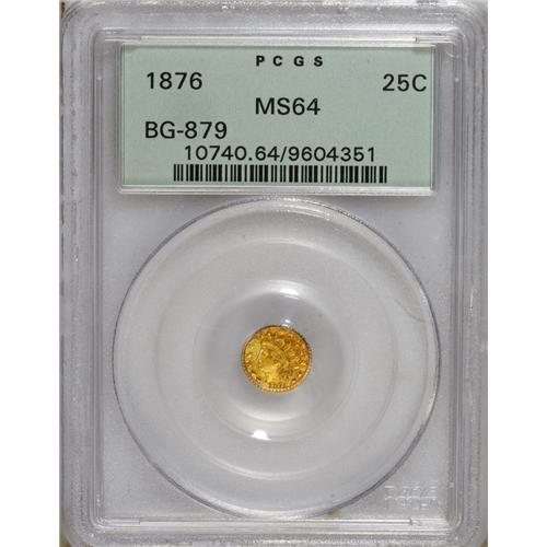 <B>1876 25C Indian Round 25 Cents, BG-879, R.4, MS64 PCGS.</B></I> PCGS Population (25/11). NGC Census: (5/2). (#10740)<BR><BR><b>Shipping:</b> Coins & Currency (<a target="_blank" href="http://www.heritageauctions.com/common/shipping.php">view shipping information</a>)
