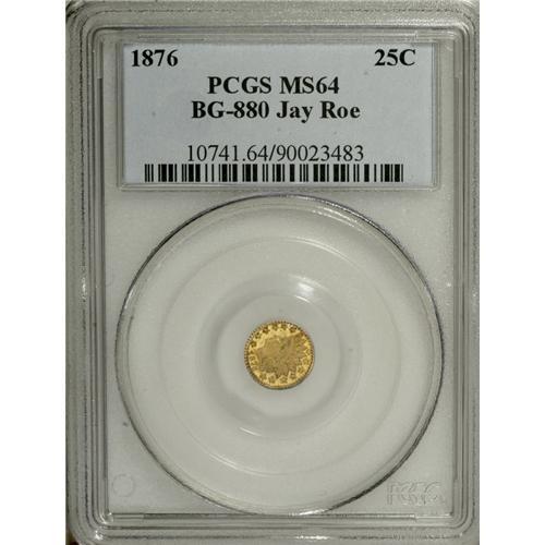 1876 25C Indian Round 25 Cents, BG-880, Low R.6, MS64