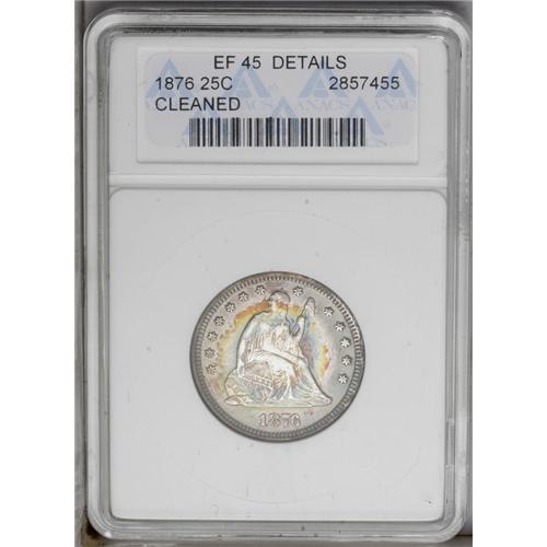 1876 25C Quarter--Cleaned--ANACS, XF45 Details, unnatu 1876[25C] Quarter--Cleaned--ANACS, XF45 Detai