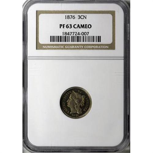 1876 3CN Cameo PR63 NGC