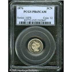 <B>1876 3CN PR65 Cameo PCGS.</B></I> Essentially untoned and nicely mirrored, with contrast that places it solidly in the cameo category. Population: 22 in 65, 10 finer (1/05).<BR><I>From The Mike Jacobson Collection.</B></I> Lot:5741