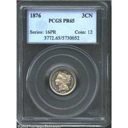 <TR><TD width="100%"><TABLE cellSpacing=1 cellPadding=3 width="100%" border=0><TBODY><TR><TD width="100%" bgColor=#79735c><FONT face=arial color=#ffffff size=3><B>Description</B> </FONT></TD></TR><TR><TD width="100%" bgColor=#ffffff><FONT face=arial size=2><B>1876 3CN PR65 PCGS.</B></I> An attractive coin with light satin texture. A pale gold patina covers the surfaces. Free from most distractions, save some scattered carbon specks and a lintmarks. </FONT></TD></TR></TBODY></TABLE></TD></TR></TBODY></TABLE><BR><A name=PricesRealized></A><TABLE cellSpacing=0 cellPadding=0 width="100%" bgColor=#000000 border=0><TBODY><TR><TD width="100%"><TABLE cellSpacing=1 cellPadding=3 width="100%" border=0><TBODY><TR><TD width="100%" bgColor=#79735c><A name=PR><FONT face=arial color=#ffffff size=3><B>Previous Prices from Heritage Auctions</B> </FONT></A></TD></TR><TR><TD bgColor=#f6f6ed><TABLE cellSpacing=0 cellPadding=0 width="100%" border=1><TBODY><TR><TD align=middle width="33%"><B>Date</B></TD><TD align=middle width="33%"><B>Service</B></TD><TD align=middle width="33%"><B>Price</B></TD></TR><TR bgColor=whitesmoke><TD width="33%"><B>03/01/2000</B></TD><TD width="33%">PCGS</TD><TD width="33%">$690.00</TD></TR><TR bgColor=whitesmoke><TD width="33%"><B>03/01/2003</B></TD><TD width="33%">NGC</TD><TD width="33%">$632.50</TD></TR><TR bgColor=whitesmoke><TD width="33%"><B>08/09/2000</B></TD><TD width="33%">NGC</TD><TD width="33%">$604.00</TD></TR><TR bgColor=whitesmoke><TD width="33%"><B>10/02/2000</B></TD><TD width="33%">NGC</TD><TD width="33%">$747.00</TD></TR><TR bgColor=whitesmoke><TD width="33%"><B>10/31/2000</B></TD><TD width="33%">NGC</TD><TD width="33%">$675.00</TD></TR><TR bgColor=whitesmoke><TD width="33%"><B>09/10/1997</B></TD><TD width="33%">NGC</TD><TD width="33%">$605.00</TD></TR><TR bgColor=whitesmoke><TD width="33%"><B>02/12/2000</B></TD><TD width="33%">NGC</TD><TD width="33%">$690.00</TD></TR><TR bgColor=whitesmoke><TD width="33%"><B>05/01/1999</B></TD><TD width="33%">NGC</TD><TD width="33%">$633.00</TD></TR><TR bgColor=whitesmoke><TD width="33%"><B>09/01/1999</B></TD><TD width="33%">NGC</TD><TD width="33%">$661.00</TD></TR><TR bgColor=whitesmoke><TD width="33%"><B>03/27/2001</B></TD><TD width="33%">PCGS</TD><TD width="33%">$750.00</TD></TR><TR bgColor=whitesmoke><TD width="33%"><B>01/05/2001</B></TD><TD width="33%">PCGS</TD><TD width="33%">$747.50</TD></TR><TR bgColor=whitesmoke><TD width="33%"><B>05/01/1998</B></TD><TD width="33%">NGC</TD><TD width="33%">$715.00</TD></TR></TBODY></TABLE></TD></TR><TR><TD bgColor=#ffffff><FONT face=arial size=1 ?>PLEASE NOTE: All prices realized reflect the final hammer price PLUS the buyer's premium in auctions that charge a buyer's premium. Each item has a notation at the top of the listing indicating whether that lot included a buyer's premium. Example: A item that sells with a final hammer price of $100 and a 20% buyer's premium will display with a price realized of $120. All information listed is intended to be as accurate as possible, but errors are possible. Please use this guide carefully and inform us of any inaccuracies. </FONT></TD></TR></TBODY></TABLE></TD></TR></TBODY></TABLE><BR><TABLE cellSpacing=0 cellPadding=0 width="100%" bgColor=#000000 border=0><TBODY><TR><TD width="100%"><TABLE cellSpacing=1 cellPadding=3 width="100%" border=0><TBODY><TR><TD width="100%" bgColor=#79735c colSpan=6><FONT face=arial color=#ffffff size=3><B>Price Guide*</B> </FONT></TD></TR><TR bgColor=#f6f6ed><TD align=middle><B>Grade</B> </TD><TD align=middle><B>Coin World<BR>(Trends)</B> </TD><TD align=middle><B>Numismedia<BR>Retail</B> </TD><TD align=middle><B>Numismedia<BR>Wholesale</B> </TD><TD align=middle><B>Coin<BR>Universe</B> </TD><TD align=middle><B>Heritage<BR>Value Index</B> </TD></TR><TR bgColor=#ffffff><TD align=middle>64</TD><TD align=right>$410.00</TD><TD align=right>$475.00</TD><TD align=right>$380.00</TD><TD align=right>$325.00</TD><TD align=right>$287.21</TD></TR><TR style="FONT-WEIGHT: bold" bgColor=#cccfdd><TD align=middle>65</TD><TD align=right>$800.00</TD><TD align=right>$940.00</TD><TD align=right>$750.00</TD><TD align=right>$1,125.00</TD><TD align=right>$658.13</TD></TR><TR bgColor=#ffffff><TD align=middle>66</TD><TD align=right>$2,250.00</TD><TD align=right>---</TD><TD align=right>$1,375.00</TD><TD align=right>$1,700.00</TD><TD align=right>$1,305.00</TD></TR><TR bgColor=#ffffff><TD colSpan=6><FONT size=1>*All information listed is intended to be as accurate as possible, but errors are possible. No item may be returned or refused based on this information which is provided as a service to our customers. You should contact each pricing source directly to determine the accuracy of this information. </FONT></TD></TR></TBODY></TABLE></TD></TR></TBODY></TABLE><BR><TABLE cellSpacing=0 cellPadding=0 width="100%" bgColor=#000000 border=0><TBODY><TR><TD width="100%"><TABLE cellSpacing=1 cellPadding=3 width="100%" border=0><TBODY><TR><TD width="100%" bgColor=#79735c><FONT face=arial color=#ffffff size=3><B>Population Guide</B> </FONT></TD></TR><TR bgColor=#ffffff><TD align=middle><!-- Begin Output of Population Grid--><TABLE cellSpacing=0 cellPadding=0 width="100%" border=0><TBODY><TR><TD vAlign=center><TABLE cellSpacing=0 width="100%" border=1 cellsadding="3"><TBODY><TR><TD vAlign=center><TABLE cellSpacing=0 cellPadding=3 width="100%" border=1><TBODY><TR><TD vAlign=center align=middle bgColor=#f0f1e8 colSpan=2 <CENTER><FONT face=Arial size=2><B>PCGS Pop </B></FONT><CENTER></CENTER></TD><TD vAlign=center align=middle bgColor=#f0f1e8 colSpan=2><CENTER><FONT face=Arial size=2><B>NGC Pop</B></CENTER></FONT></TD></TR><TR><TD vAlign=center><FONT face=Arial size=2>(65)</FONT> </TD><TD vAlign=center align=right><FONT face=Arial size=2>82</FONT> </TD><TD vAlign=center><FONT face=Arial size=2>(65)</FONT> </TD><TD vAlign=center align=right><FONT face=Arial size=2>91</FONT> </TD></TR><TR><TD vAlign=center><FONT face=Arial size=2>(>65)</FONT> </TD><TD vAlign=center a