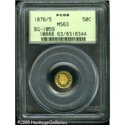 <B>1876/5 50C Indian Round 50 Cents, BG-1059, R.4, MS63 PCGS.</B></I> The 6 on the die was crudely altered by hand from a 5, as made. A deeply mirrored honey-gold piece, well struck and with only a few wispy slide marks on the fields. Accompanied by a modern box and holder issued by Sunburst Co. Lot:9817