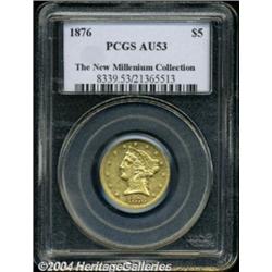 <table><tbody><tr><td><table> <TR><TD width="100%"><TABLE cellSpacing=1 cellPadding=3 width="100%" border=0><TBODY><TR><TD width="100%" bgColor=#79735c><FONT face=arial color=#ffffff size=3><B>Description</B> </FONT></TD></TR><TR><TD width="100%" bgColor=#ffffff><FONT face=arial size=2><B>1876 $5 AU53 PCGS.</B></I> There are very few survivors in any grade of the 1876 Half Eagle, as one might expect from an issue of a mere 1,432 pieces. Business strikes are invariably prooflike, and in the past, this has created some confusion with the auction data. To further compound the confusion, this coin was struck from proof dies as a business strike. According to Breen there is a die lump below the eye on business strikes and a die lump below the jaw on proofs. This coin has the die lump below the jaw indicating that it is a proof. However, the striking characteristics and the fields are not indicative of a proof. Normal contact marks pepper the reflective fields on both sides. Population: 2 in 53, 11 finer (10/03).<BR><I>From The New Millennium Collection, Part 3.</B></I> </FONT></TD></TR></TBODY></TABLE></TD></TR></TBODY></TABLE><BR><A name=PricesRealized></A><TABLE cellSpacing=0 cellPadding=0 width="100%" bgColor=#000000 border=0><TBODY><TR><TD width="100%"><TABLE cellSpacing=1 cellPadding=3 width="100%" border=0><TBODY><TR><TD width="100%" bgColor=#79735c><A name=PR><FONT face=arial color=#ffffff size=3><B>Previous Prices from Heritage Auctions</B> </FONT></A></TD></TR><TR><TD bgColor=#f6f6ed>No Prior Data Recorded </TD></TR><TR><TD bgColor=#ffffff><FONT face=arial size=1 ?>PLEASE NOTE: All prices realized reflect the final hammer price PLUS the buyer's premium in auctions that charge a buyer's premium. Each item has a notation at the top of the listing indicating whether that lot included a buyer's premium. Example: A item that sells with a final hammer price of $100 and a 20% buyer's premium will display with a price realized of $120. All information listed is intended to be as accurate as possible, but errors are possible. Please use this guide carefully and inform us of any inaccuracies. </FONT></TD></TR></TBODY></TABLE></TD></TR></TBODY></TABLE><BR><TABLE cellSpacing=0 cellPadding=0 width="100%" bgColor=#000000 border=0><TBODY><TR><TD width="100%"><TABLE cellSpacing=1 cellPadding=3 width="100%" border=0><TBODY><TR><TD width="100%" bgColor=#79735c colSpan=6><FONT face=arial color=#ffffff size=3><B>Price Guide*</B> </FONT></TD></TR><TR bgColor=#f6f6ed><TD align=middle><B>Grade</B> </TD><TD align=middle><B>Coin World<BR>(Trends)</B> </TD><TD align=middle><B>Numismedia<BR>Retail</B> </TD><TD align=middle><B>Numismedia<BR>Wholesale</B> </TD><TD align=middle><B>Coin<BR>Universe</B> </TD><TD align=middle><B>Heritage<BR>Value Index</B> </TD></TR><TR bgColor=#ffffff><TD align=middle>50</TD><TD align=right>$3,550.00</TD><TD align=right>---</TD><TD align=right>$4,025.00</TD><TD align=right>---</TD><TD align=right>$2,699.72</TD></TR><TR style="FONT-WEIGHT: bold" bgColor=#cccfdd><TD align=middle>53</TD><TD align=right>---</TD><TD align=right>---</TD><TD align=right>$4,100.00</TD><TD align=right>---</TD><TD align=right>$3,413.01</TD></TR><TR bgColor=#ffffff><TD align=middle>55</TD><TD align=right>$6,250.00</TD><TD align=right>---</TD><TD align=right>$4,425.00</TD><TD align=right>$5,200.00</TD><TD align=right>$3,866.41</TD></TR><TR bgColor=#ffffff><TD colSpan=6><FONT size=1>*All information listed is intended to be as accurate as possible, but errors are possible. No item may be returned or refused based on this information which is provided as a service to our customers. You should contact each pricing source directly to determine the accuracy of this information. </FONT></TD></TR></TBODY></TABLE></TD></TR></TBODY></TABLE><BR><TABLE cellSpacing=0 cellPadding=0 width="100%" bgColor=#000000 border=0><TBODY><TR><TD width="100%"><TABLE cellSpacing=1 cellPadding=3 width="100%" border=0><TBODY><TR><TD width="100%" bgColor=#79735c><FONT face=arial color=#ffffff size=3><B>Population Guide</B> </FONT></TD></TR><TR bgColor=#ffffff><TD align=middle><!-- Begin Output of Population Grid--><TABLE cellSpacing=0 cellPadding=0 width="100%" border=0><TBODY><TR><TD vAlign=center><TABLE cellSpacing=0 width="100%" border=1 cellsadding="3"><TBODY><TR><TD vAlign=center><TABLE cellSpacing=0 cellPadding=3 width="100%" border=1><TBODY><TR><TD vAlign=center align=middle bgColor=#f0f1e8 colSpan=2 <CENTER><FONT face=Arial size=2><B>PCGS Pop </B></FONT><CENTER></CENTER></TD><TD vAlign=center align=middle bgColor=#f0f1e8 colSpan=2><CENTER><FONT face=Arial size=2><B>NGC Pop</B></CENTER></FONT></TD></TR><TR><TD vAlign=center><FONT face=Arial size=2>(53)</FONT> </TD><TD vAlign=center align=right><FONT face=Arial size=2>2</FONT> </TD><TD vAlign=center><FONT face=Arial size=2>(53)</FONT> </TD><TD vAlign=center align=right><FONT face=Arial size=2>2</FONT> </TD></TR><TR><TD vAlign=center><FONT face=Arial size=2>(>53)</FONT> </TD><TD vAlign=center align=right><FONT face=Arial size=2>11</FONT> </TD><TD vAlign=center><FONT face=Arial size=2>(>53)</FONT> </TD><TD vAlign=center align=right><FONT face=Arial size=2>15</FONT> </TD></TR></TBODY></TABLE></TD></TR></TBODY></TABLE></TD></TR></TBODY></TABLE><!-- End Output of Population Grid--></TD></TR></TBODY></TABLE></TD></TR></TBODY></TABLE><BR><TABLE cellSpacing=0 cellPadding=0 width="100%" bgColor=#000000 border=0><TBODY><TR> <font color='#000000'><span style='background-color: #FFFFFF'><td bgcolor='#FFFFFE'> Important notice: Heritage usually auctions material at the rate of 200-250 lots per hour. On some occasions eBay Live bid software or the Internet may not be able to keep up with the pace of the auction. We recommend placing a realistic absentee bid now as insurance to avoid disappointment. Occasionally the auctioneer may eliminate or reject an eBay Live bid, and the auctioneer may also reopen a lot after the close of the eBay live bidding (usually because we missed an audience bid), and m