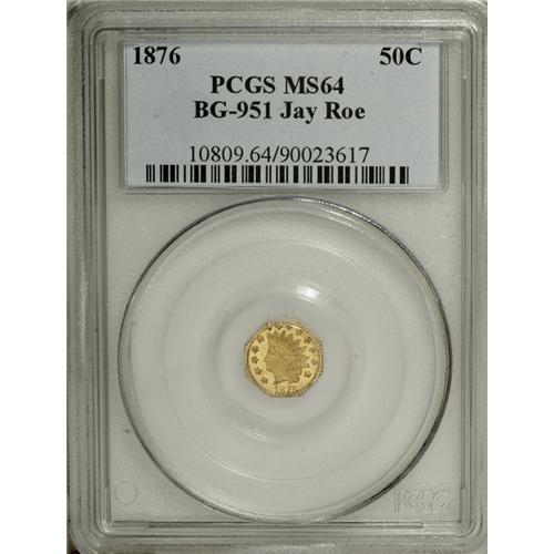 1876 50C Indian Octagonal 50 Cents, BG-949, R.4, MS65