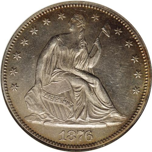 <B>1876 50C --Misplaced Mint Mark, Cleaned--ANACS. Impaired PR60.</B></I> A well struck Centennial year Seated Half with light obverse handling marks and attractive golden-brown toning at the margins. The top of a letter C is found on Liberty's neck, as made, believed caused when a Large CC mintmark letter punch was inadvertently dropped on the obverse proof die.