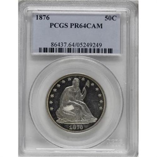 <B>1876 50C PR64 Cameo PCGS.</B></I> Type One Reverse. Stark field-to-device contrast is noted on both sides. The design elements are boldly struck, and the fields are watery, with just a touch of cloudiness. Faint obverse hairlines limit the grade. Population: 10 in 64 Cameo, 6 finer (11/07).<BR><I>From The Kallenberg #1 PCGS Registry Set Of Proof Half Dollars.</B></I><BR><BR><b>Shipping:</b> Coins & Currency (<a target="_blank" href="http://www.heritageauctions.com/common/shipping.php">view shipping information</a>)