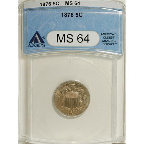 1876 5C MS64 ANACS. NGC Census: (93/37). PCGS Popu