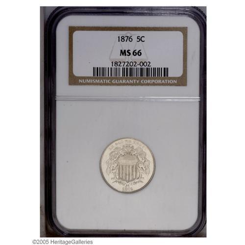 1876 5C MS66 NGC. A well-struck, untoned, steel-white 1876[5C] MS66 [S NGC.