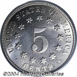 <table><tr><td><table><tr><td>1876 5C MS66 PCGS. This highly lustrous and untoned nickel shows full striking definition. There are no obvious or distracting abrasions present, just a couple of small die cracks, a feature one always expects on Shield nickels. Population: 5 in 66, 0 finer (2/04). <BR><BR><B>Important notice:</B> Heritage usually auctions material at the rate of 200-250 lots per hour. On some occasions eBay Live bid software or the Internet may not be able to keep up with the pace of the auction. We recommend placing a realistic absentee bid now as insurance to avoid disappointment. Occasionally the auctioneer may eliminate or reject an eBay Live bid, and the auctioneer may also reopen a lot after the close of the eBay live bidding (usually because we missed an audience bid), and may reject your bid even if it shows you as the winning bidder. By bidding via eBay Live, you agree that Heritage may award the lot to another bidder at its sole discretion under the circumstances described above or any other reasonable circumstances. Since eBay bids are not shown to us until we open the lot on the floor, we treat those bids just like floor bids. In most cases the floor responds before the eBay bid is presented to us, due to Internet lag time, so for consistency we have made it a policy that floor bids are always considered first over tie eBay live bids. Also please note that all Heritage lots purchased through eBay Live carry a 20% Buyer's Premium. Please make sure you read the Terms and Conditions before you bid. <BR><BR><B>IMPORTANT ANNOUNCEMENT ABOUT RESERVES:</B> Heritage now divulges all reserves on its web site 7 days before every auction. If you want to know whether the reserve on this lot has been met, and if not, what the reserve amount is, please visit this lot page on the HeritageCoin.com web site, or email: bid@HeritageGalleries.com </span></font></td></tr></table></td></tr></table>