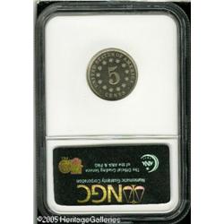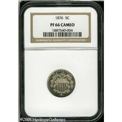 <B>1876 5C PR66 Cameo NGC.</B></I> Pristine surfaces exhibit gorgeous cameos. The eye appeal is further enhanced by sharp definition on all of the design elements. Population: 16 in 66, 3 finer (1/05). Lot:5850